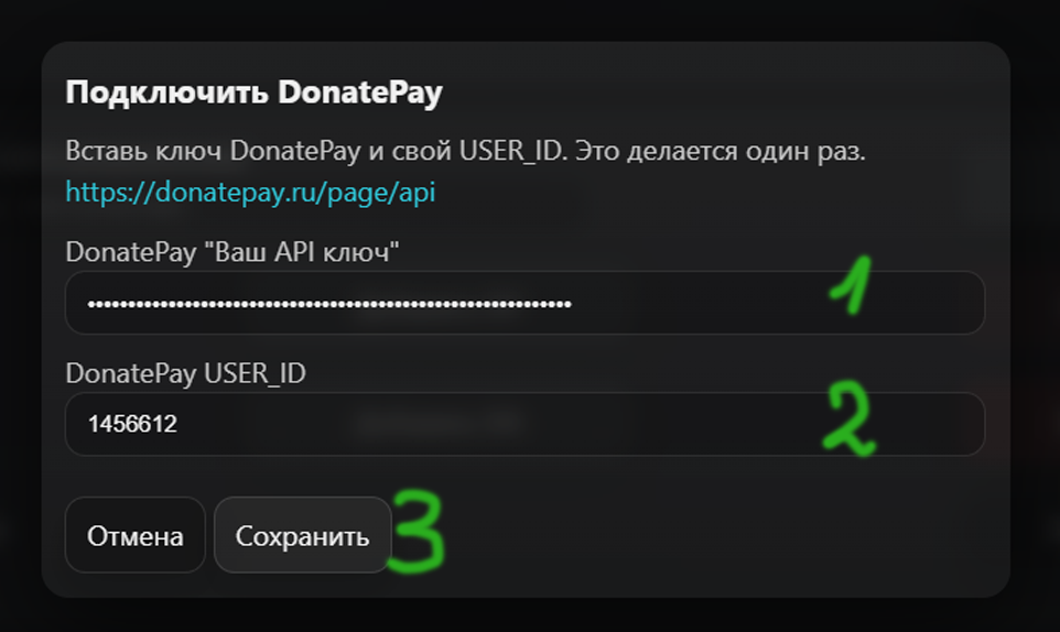 3. Подключение DonatePay (DP)