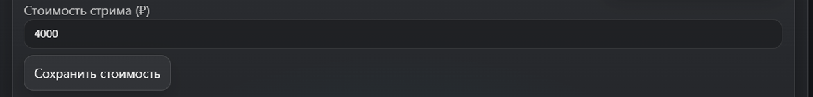 - В админке найди поле “Стоимость стрима (₽)”.